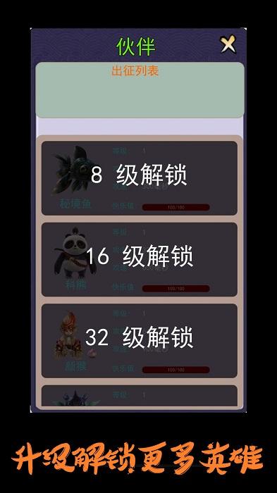 4、自由挑战丰富的关卡,进行升级,挂机战斗也有超多的游戏乐趣。